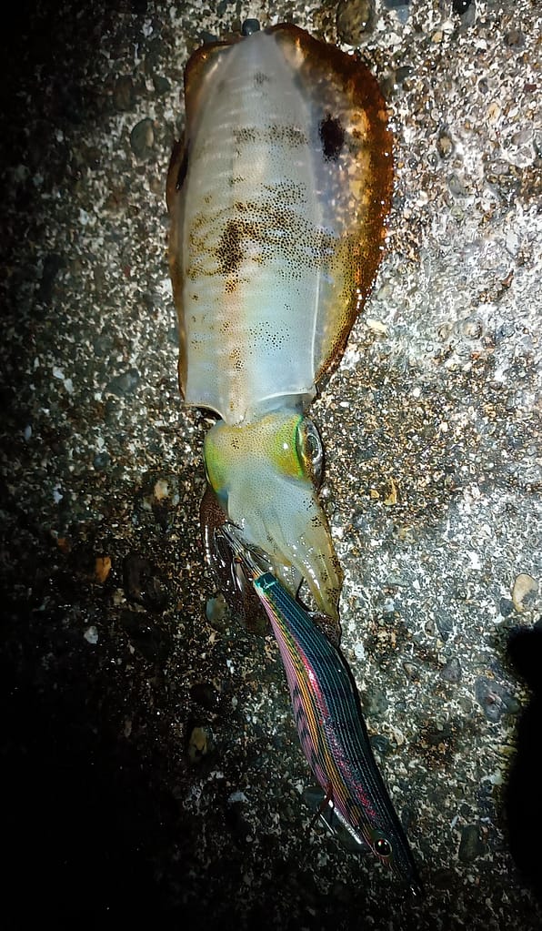 しばらく足元を探っていると、犯人は小さいアオリイカでした